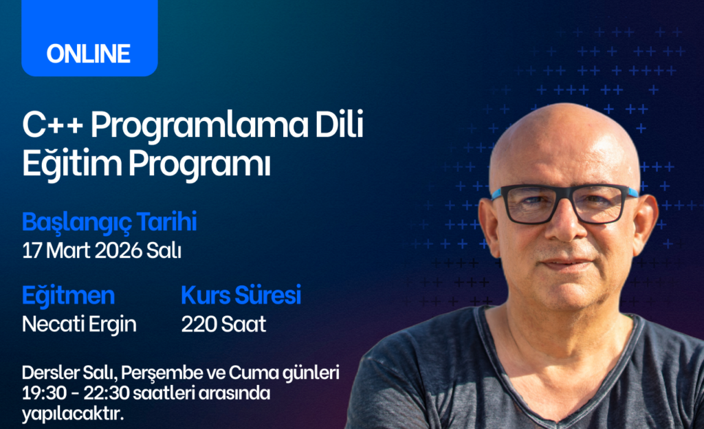⚠️ Bu eğitim, C++’ın C dilinden miras aldığı temel sözdizimi ve standart kütüphane yapısını kapsamamaktadır. Katılımcıların temel düzeyde C bilgisine sahip oldukları varsayılmaktadır. Eğer seviyenizin programa uygun olup olmadığından emin değilseniz, Necati Ergin ile iletişime geçerek kısa bir değerlendirme alabilirsiniz.